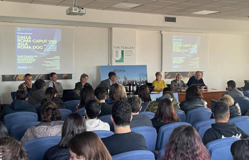 La cornice è stata quella prestigiosa dell’Aula Moscati dell’Università degli Studi di Tor Vergata, l’introduzione sul binomio vino-Urbe quella del Professore Ernesto Di Renzo, docente di Antropologia del Gusto, il promotore invece il Consorzio di Tutela Vini Roma DOC. Questi gli attori principali della tavola rotonda “Dalla Roma Caput Vini alla Roma DOC”, un viaggio attraverso i millenni durante il quale è emerso il ruolo fondamentale che il vino ha sempre avuto nella storia di Roma. Così, di fronte a una vasta platea, composta da studenti e docenti, giornalisti e addetti ai lavori, si è tenuto a battesimo il Progetto Roma DOCet che caratterizzerà diversi appuntamenti del calendario 2023 messo a punto dal Consorzio di Tutela Vini Roma DOC.