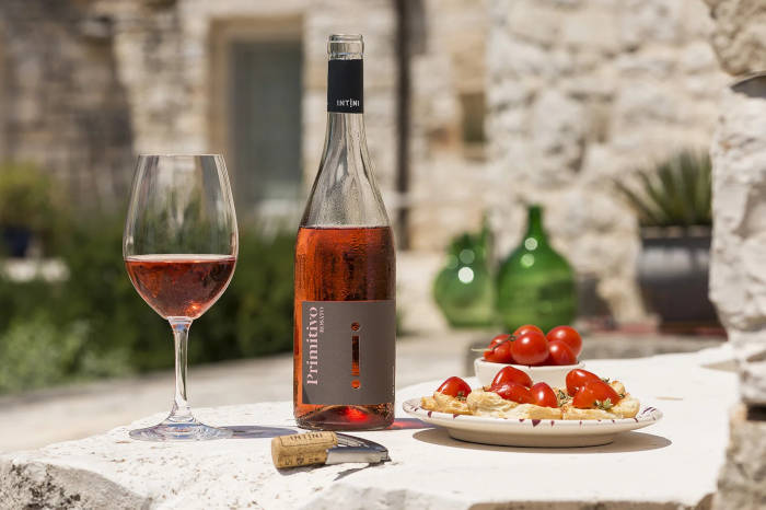 Per parte sua il Primitivo Rosato IGT Puglia di Intini, ottenuto da uve che crescono sempre nel tipico terreno calcareo-argilloso della Puglia, si mostra di un bel rosa luminoso virante verso il corallo. Lavorate in purezza, le sue uve esprimono una grande struttura con un naso evocante fragoline di bosco, roselline selvatiche e violette, sensazioni che sul palato fanno il paio con la sua sapidità e una trama tannica setosa supportata da un’acidità contenuta. Di grande equilibrio, ha un sapore armonico e fresco, con un’ombra speziata in chiusura di sorso. Ideale se unito in matrimonio con antipasti a base di salumi e formaggi (sul mio caprino ha fatto una gran bella figura), ma anche con primi o secondi di pesce (mi è piaciuto assai con un magnifico tonno appena scottato), ha molto da dire pure con dei sughi di carni bianche. Davvero due vini d’autore che dimostrano come chi lavora sempre bene, non può che dar vita a dei piccoli gioielli.