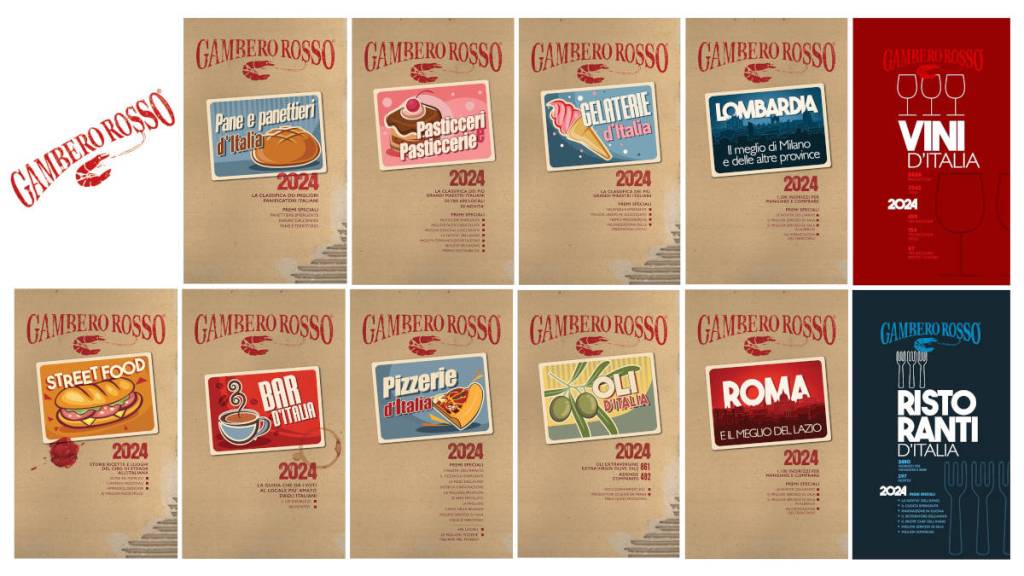 Dai Vini d’Italia, una delle bandiere della casa, alla Guida di Roma, fino ai Ristoranti d’Italia, al Berebene, con i successivi vademecum del gusto riguardanti Milano e la Lombardia, la crescita della casa editrice è stata rapida e inarrestabile. Nel 2004 nasce, infatti, Bar d’Italia, nel 2011 Pasticceri e pasticcerie e Oli d’Italia, nel 2013 Street Food e Pizzerie d’Italia, nel 2017 Gelaterie d’Italia e, nel 2019, la neonata e non meno fortunata Pane e panettieri, tutte diventate un punto di riferimento dei vari settori coinvolti: le tre Foglie per gli oli, i tre Chicchi e le tre Tazzine per i bar, i tre Spicchi (per le pizzerie al piatto) e le tre Rotelle (riservate alle pizzerie a taglio), le tre Torte per le pasticcerie, i tre Pani per i panifici migliori. Con Mensurati – giornalista di lungo corso, già inviato speciale e caporedattore di Repubblica – ogni guida continuerà a mantenere la sua precisa identità, garantita dalla consueta, costante e attenta ricerca in ogni settore dei migliori artigiani, nel segno della qualità, tratto distintivo e inequivocabile delle guide del Gambero Rosso. Unica differenza è che tutte avranno un unico formato più agile e maneggevole con una grafica volutamente agé, a cominciare dalla testata ripresa da un vecchio timbro della casa editrice.