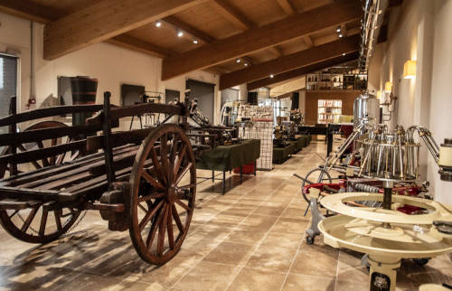 Dal museo alla vigna, dunque, e viceversa, il vino racconta non solo la sua evoluzione attraverso le macchine per produrlo e conservarlo, ma anche la realtà di due famiglie che si sono dedicate con passione a questa terra: strumenti, oggetti, documenti, fotografie e testi che sono una finestra storica sullo sviluppo delle macchine enologiche dalle primissime cantine, passando dal fermento degli anni ’60 del secolo scorso fino alla svolta degli anni ’80. Tra gli oggetti più antichi risalenti a fine ‘700, spiccano due filtri in legno e a sacchetti di cotone che servivano a farvi passare il vino attraverso, chicche affiancate da una ricca sezione di tappi, tappatori e cavatappi esposti per tipologia ed evoluzione.